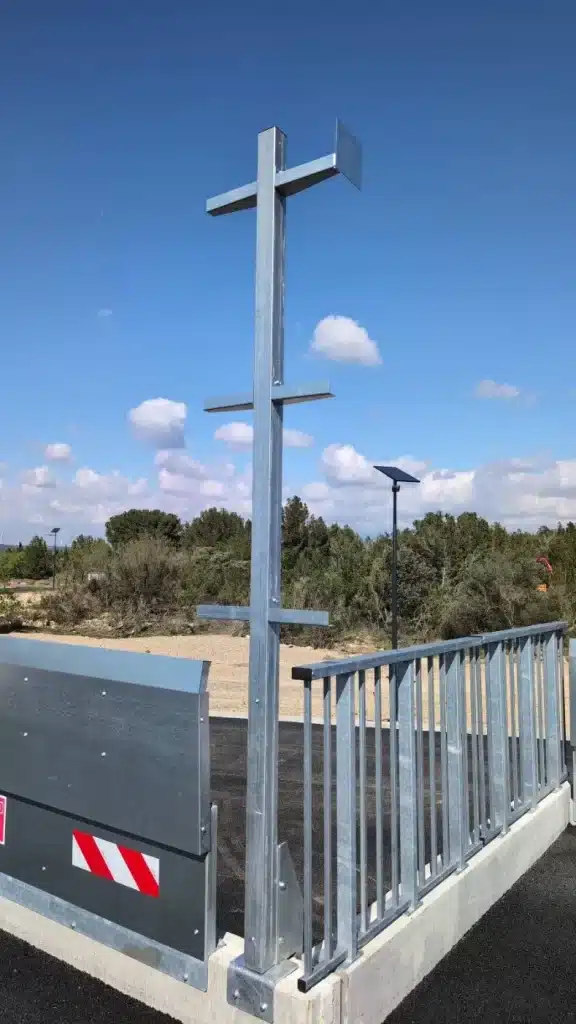 Les panneaux de haut de quai sont montés sur des mâts fixes de 3 mètres en acier galvanisé et indiquent la nature des déchets des différents points de déchargement.