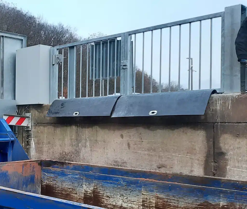 Garde-corps battant permettant de sécuriser le haut de quai des déchetteries.